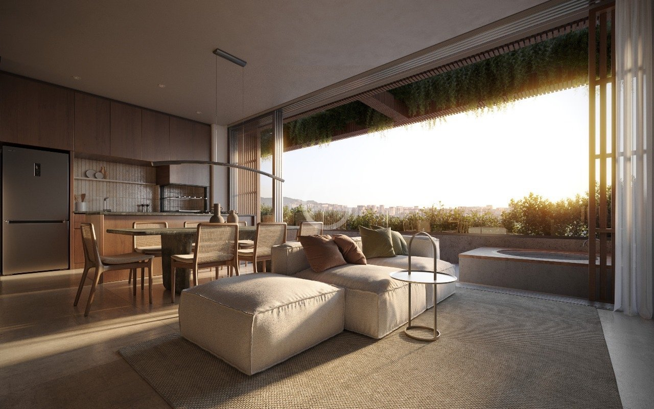 Inserido em um empreendimento que une arquitetura autoral, design atemporal e um paisagismo sensorial, o apartamento 302 ainda conta com toda a infraestrutura do Ernesto 142: