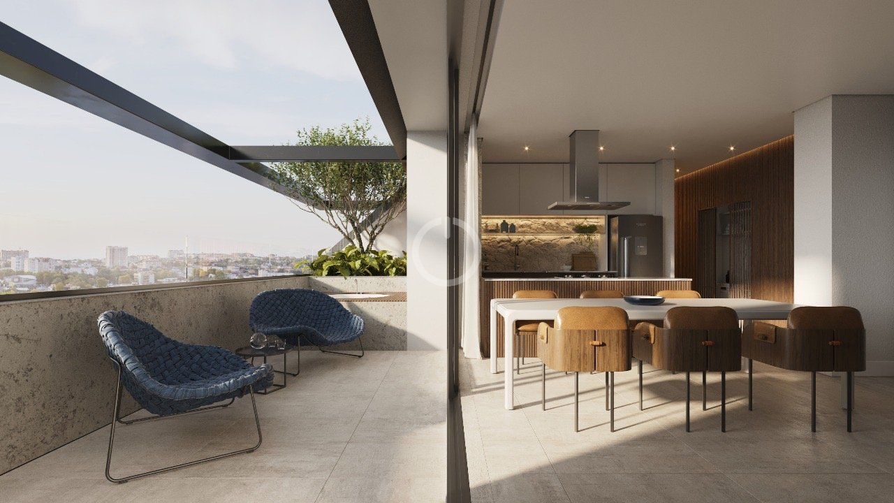 Com 2 suítes bem distribuídas, o apartamento oferece um layout funcional que favorece a privacidade dos ambientes íntimos sem abrir mão da integração no convívio. O living é amplo e acolhedor, com cozinha gourmet integrada à sala de estar e jantar, ideal para quem valoriza momentos à mesa e conversas que se estendem.