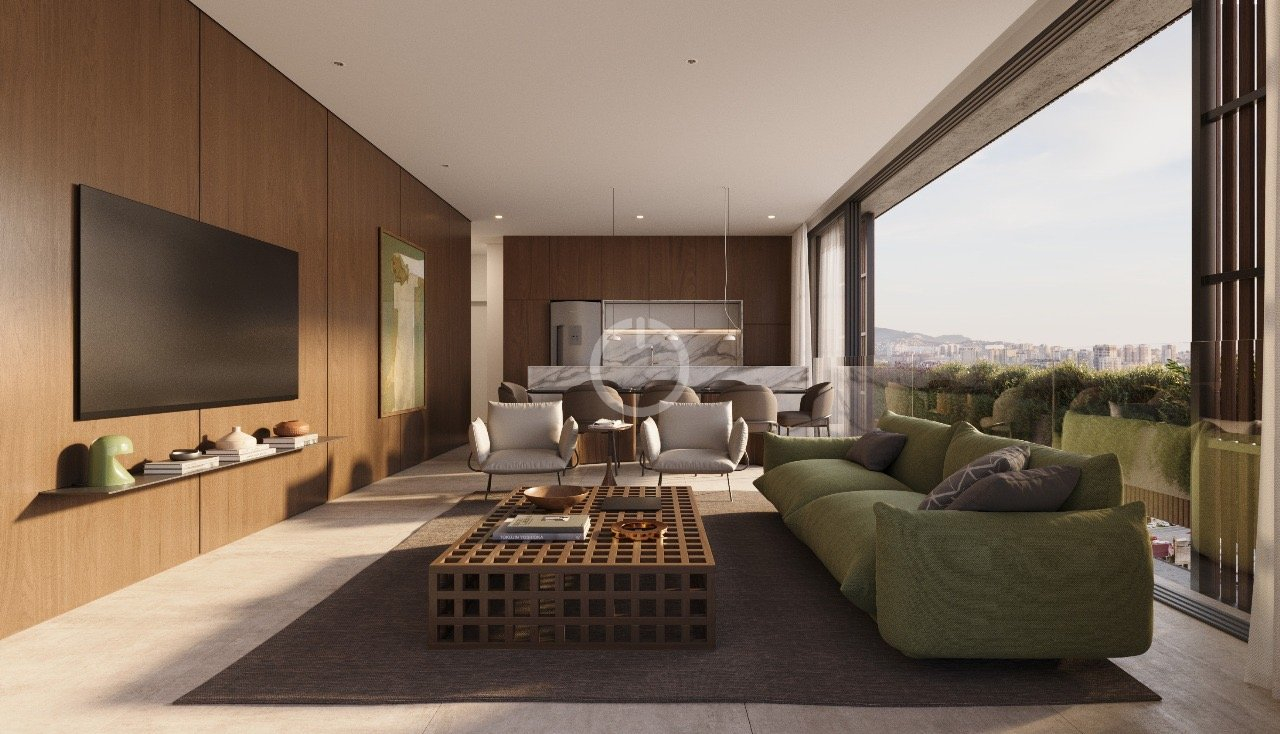 As esquadrias piso-teto garantem excelente iluminação natural e permitem contemplar o entorno com amplitude, enquanto os acabamentos de alto padrão e a marcenaria planejada elevam o padrão estético e funcional do imóvel.