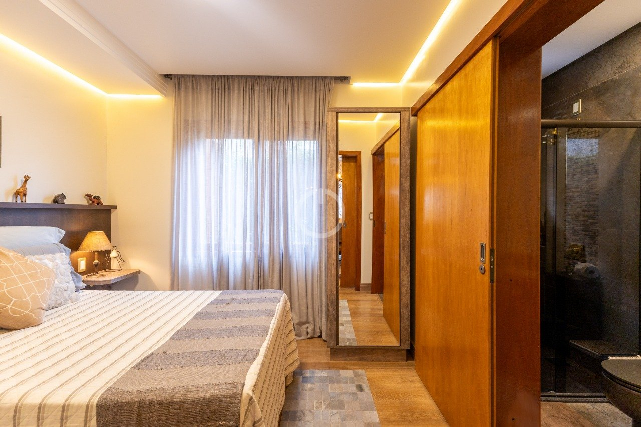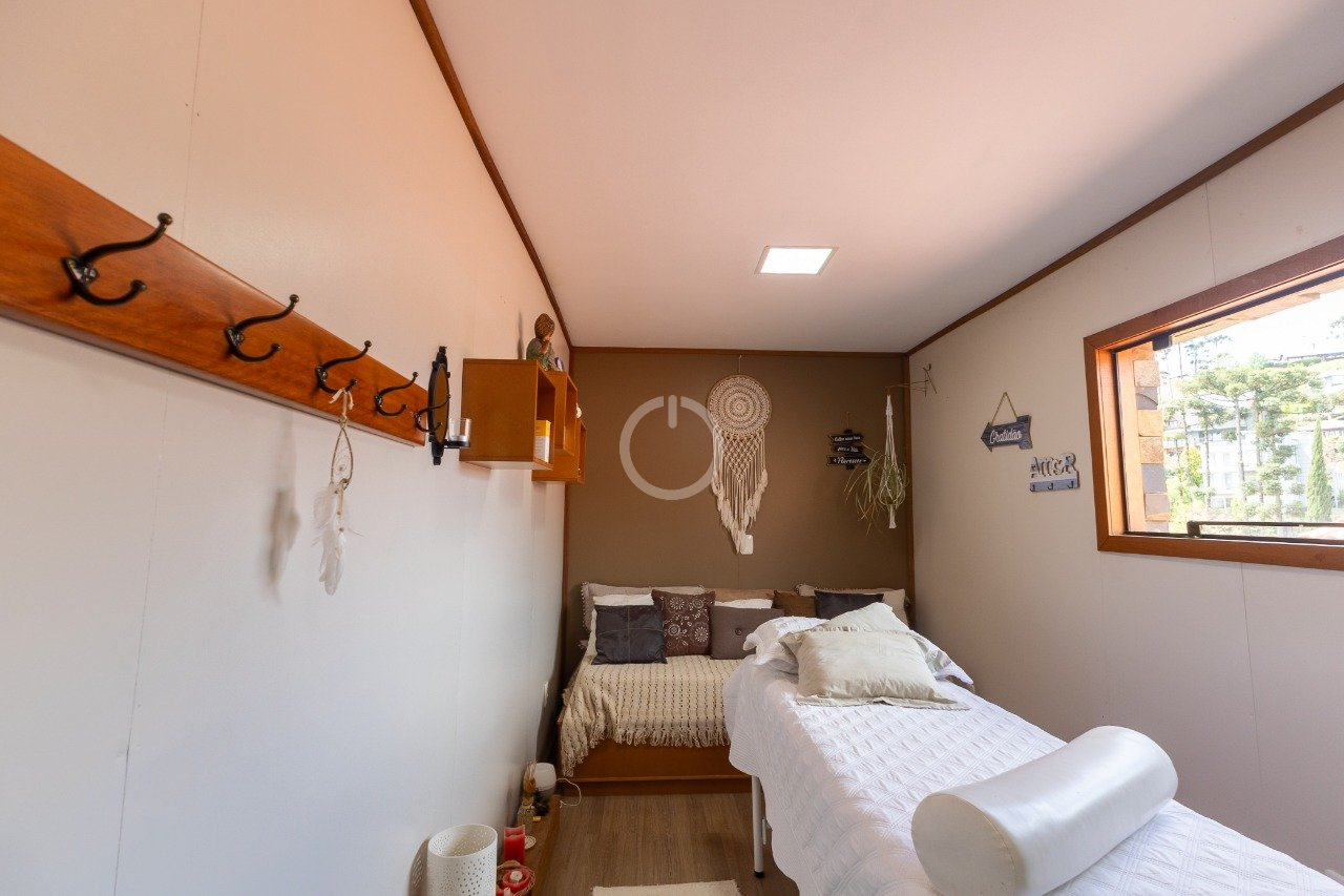A suíte master é um verdadeiro refúgio dentro do refúgio: 100 m² que abraçam o corpo e aquecem o espírito. Com lareira canadense, banheira spa e um solarium envidraçado que se abre para o céu da serra, esse ambiente é um convite ao descanso, à contemplação e ao silêncio confortável que só os grandes lugares oferecem.