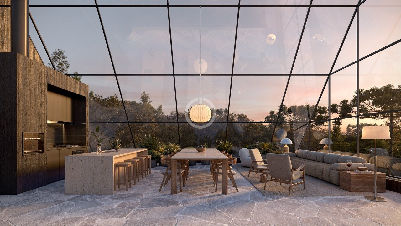 No rooftop, um salão de festas envidraçado oferece vista 360° para Gramado, complementado por coworking e academia. Infraestrutura pensada para uma vida moderna e funcional.