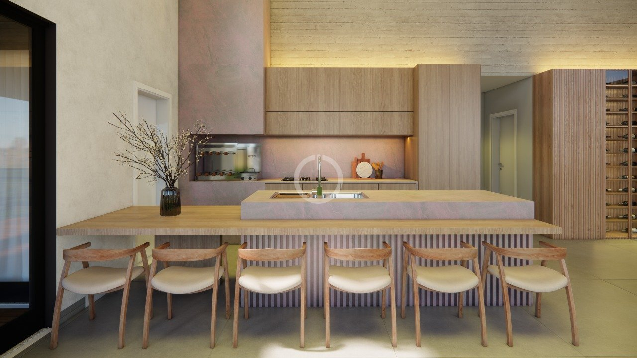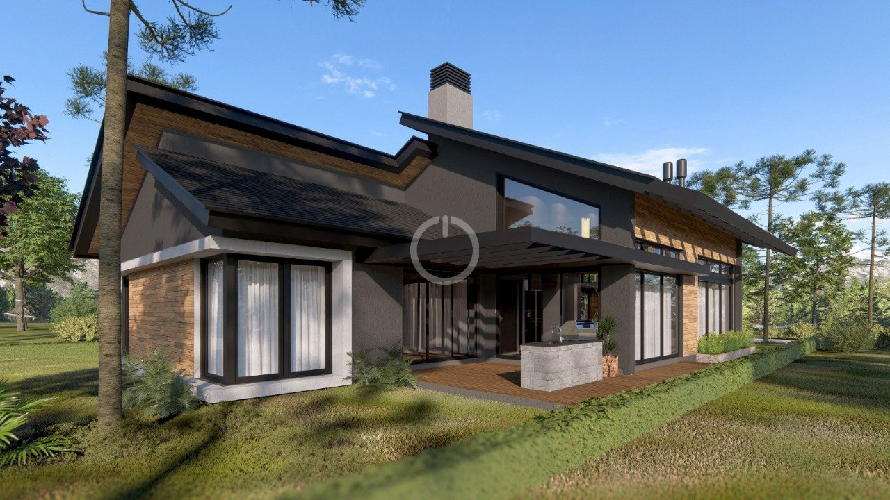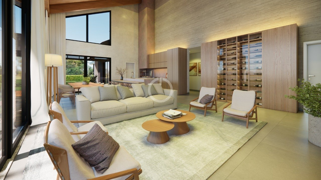 Totalmente térrea, a residência conta com 3 suítes, incluindo uma suíte máster com closet, e um layout inteligente que privilegia fluidez, iluminação natural e bem-estar. A combinação de concreto aparente, pedras naturais, madeira e vidro reforça a identidade arquitetônica da Serra Gaúcha, criando ambientes acolhedores com um toque moderno.