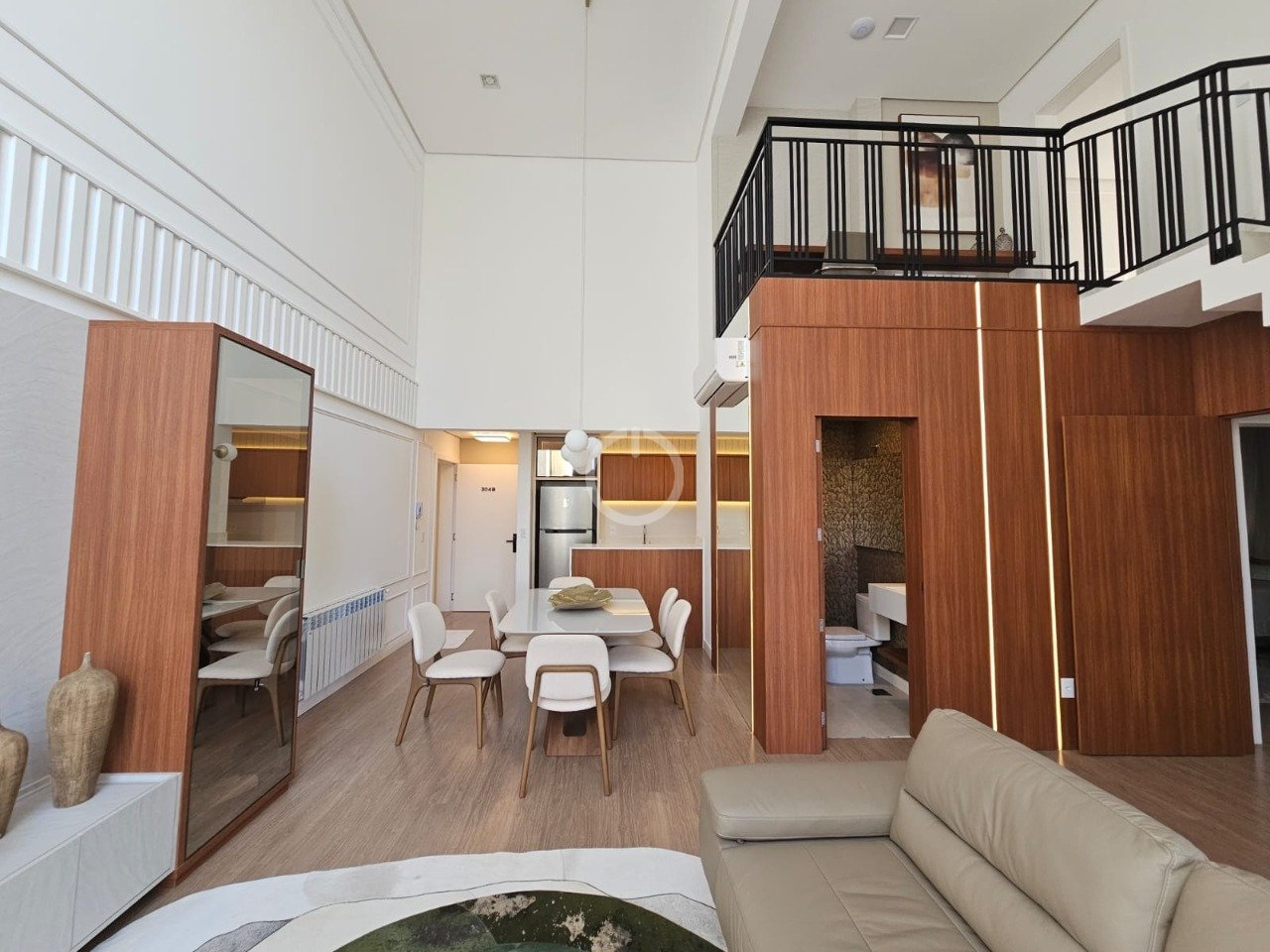 O living é integrado à sala de estar e à sala de jantar, com acesso à varanda, ideal para momentos de lazer.