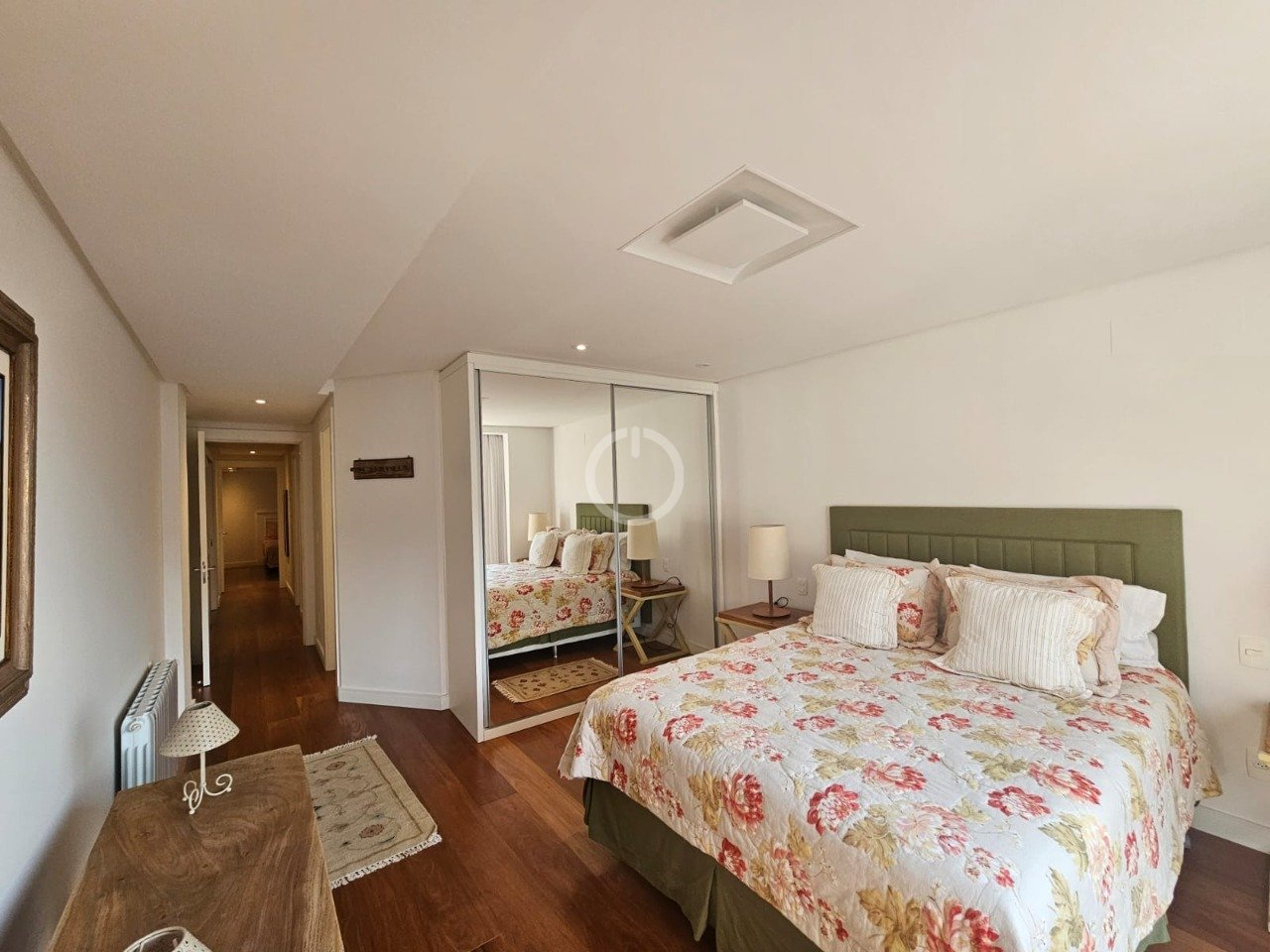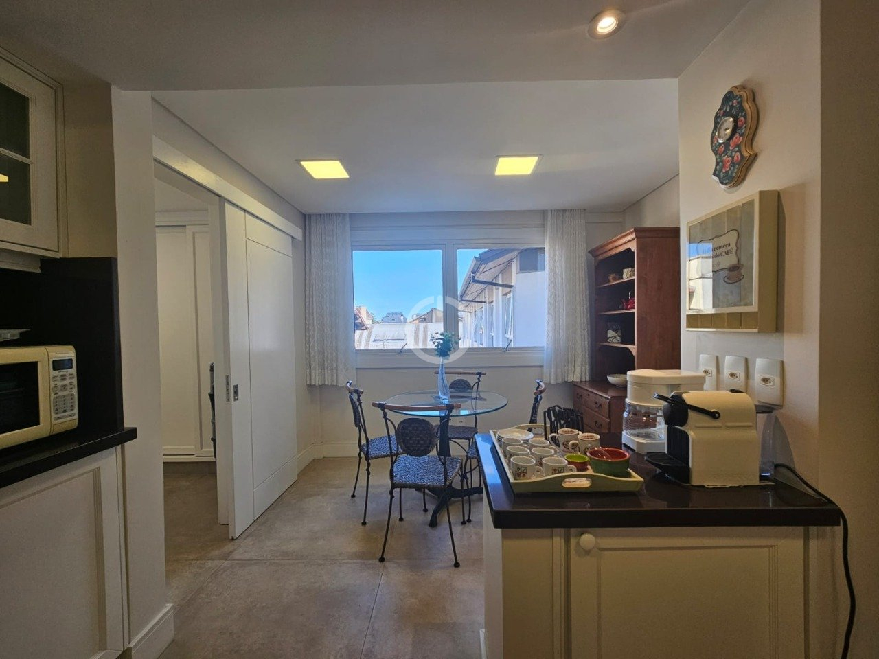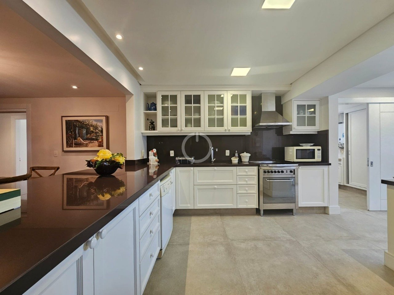A experiência é complementada por calefação instalada em todo o apartamento, churrasqueira para momentos especiais, além de uma cozinha completa, planejada para quem valoriza funcionalidade sem abrir mão do design. O imóvel ainda conta com dependência de empregada com banheiro privativo, oferecendo praticidade e conforto no dia a dia.