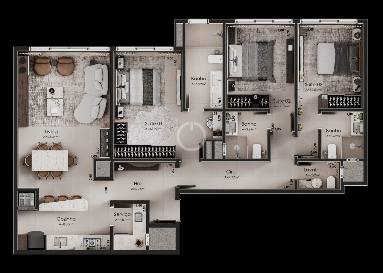 3 dorm. | 3 suítes | 1 vaga | 122.84m² | Cód. 788 | Compartilhar no WhatsApp