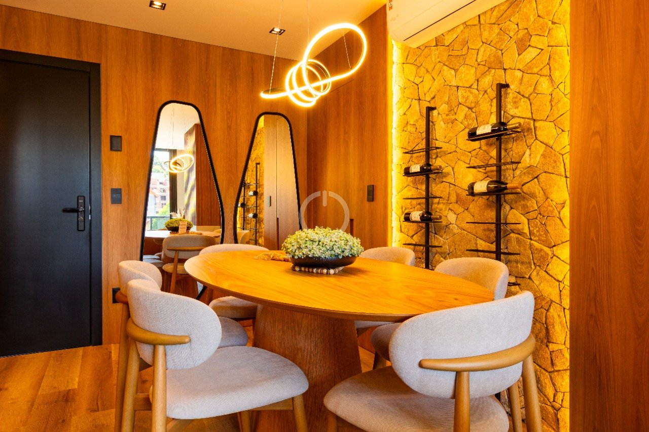 Com 79 m² privativos, composta por 02 suítes, lavabo, cozinha com churrasqueira, área de serviço, sala de jantar e estar integradas, living integrado e uma vaga de garagem.