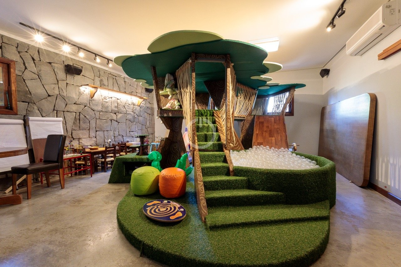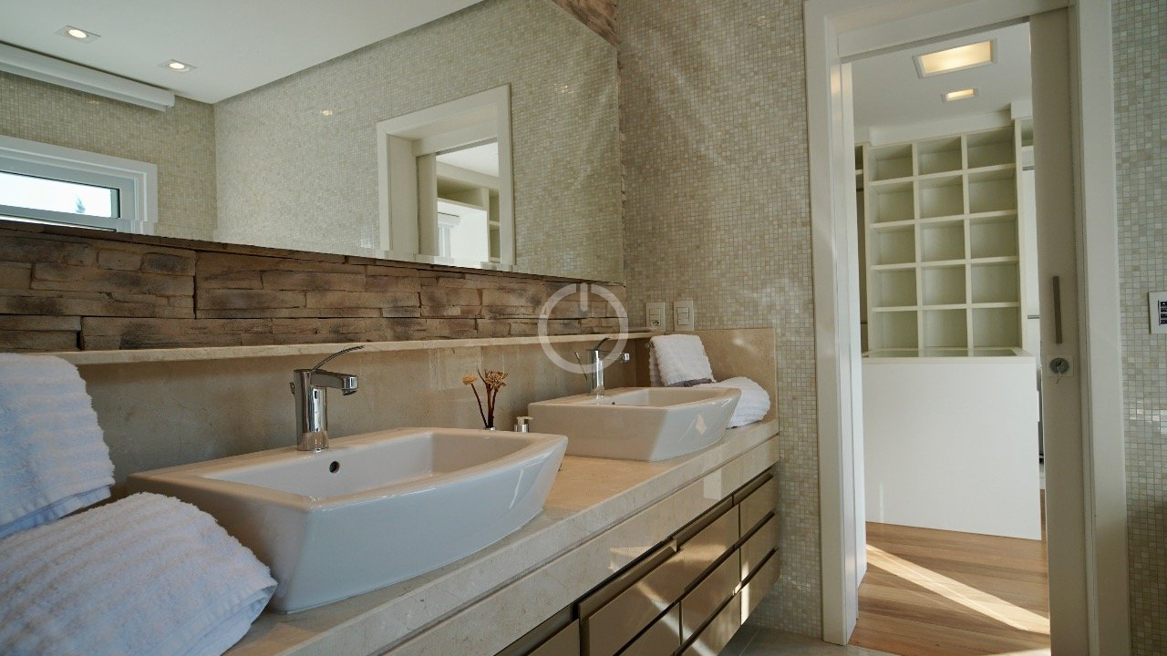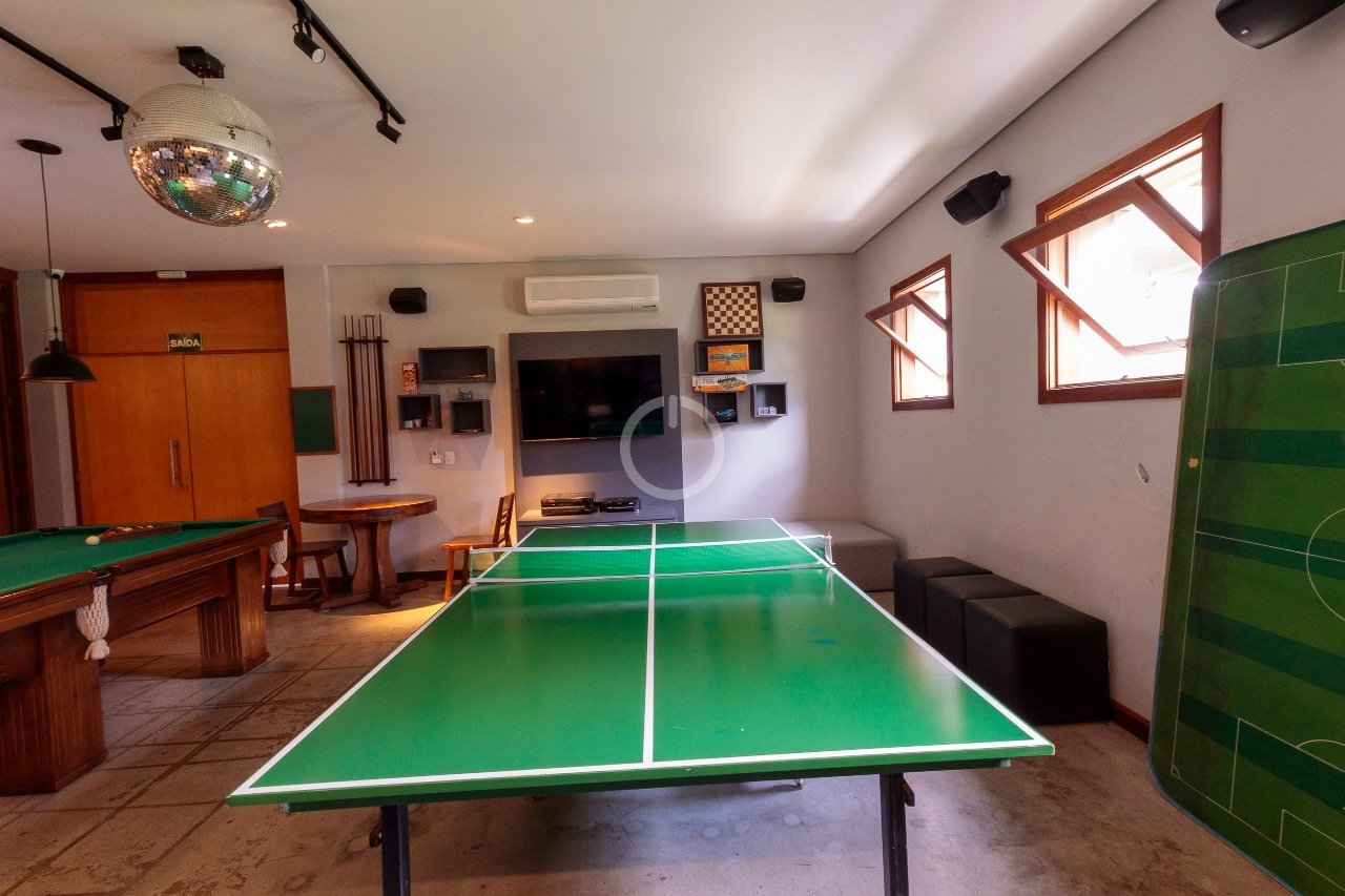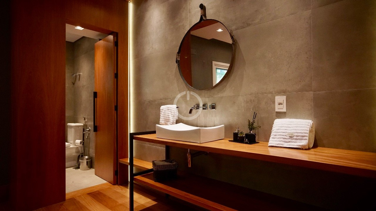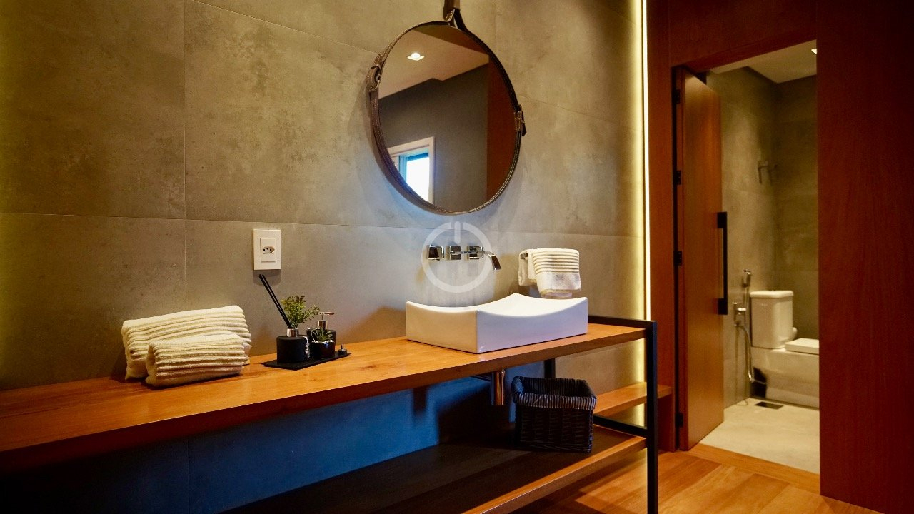 Na área externa, o lazer se integra à arquitetura com banheiro de apoio à piscina, amplos espaços de contemplação e infraestrutura preparada com espera para split em todos os ambientes. A garagem acomoda quatro veículos de grande porte.