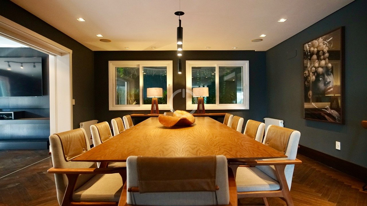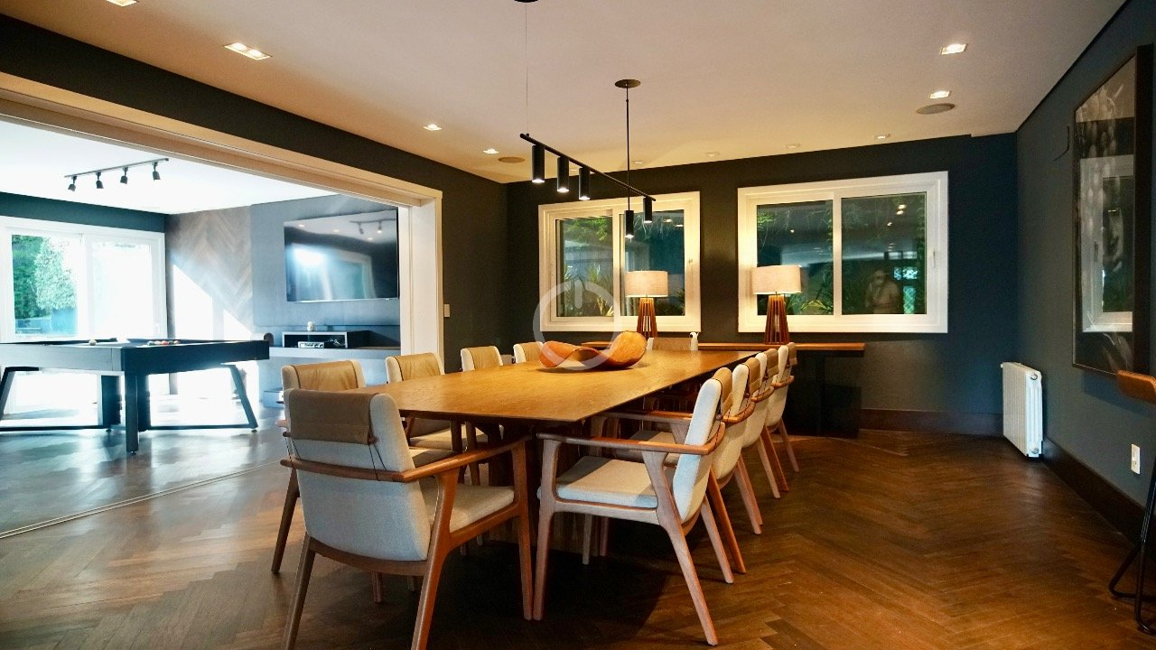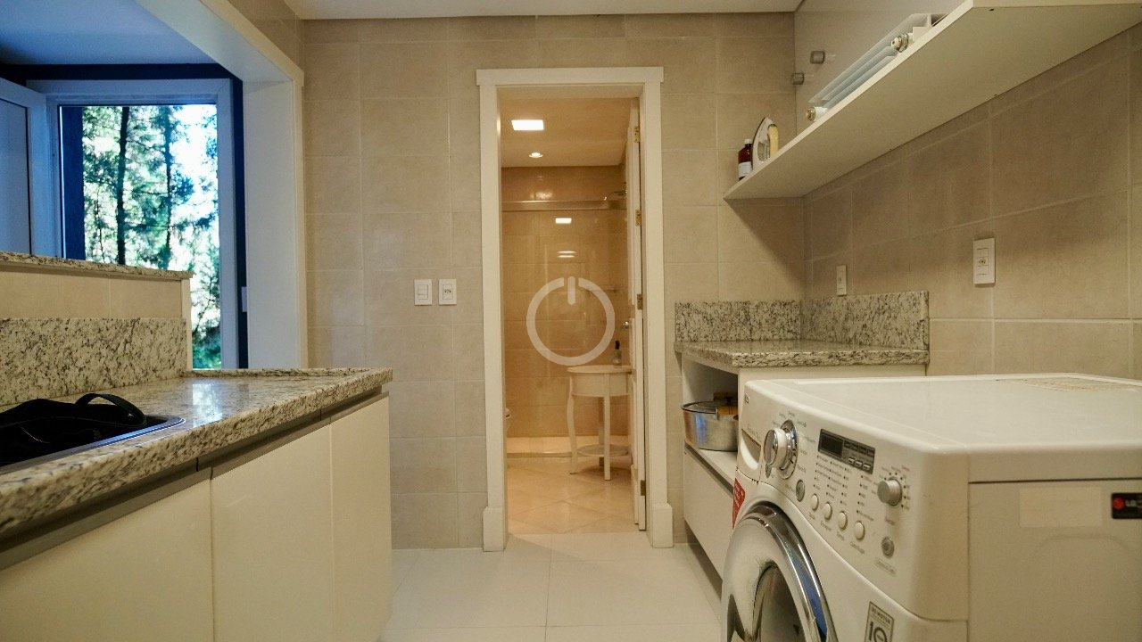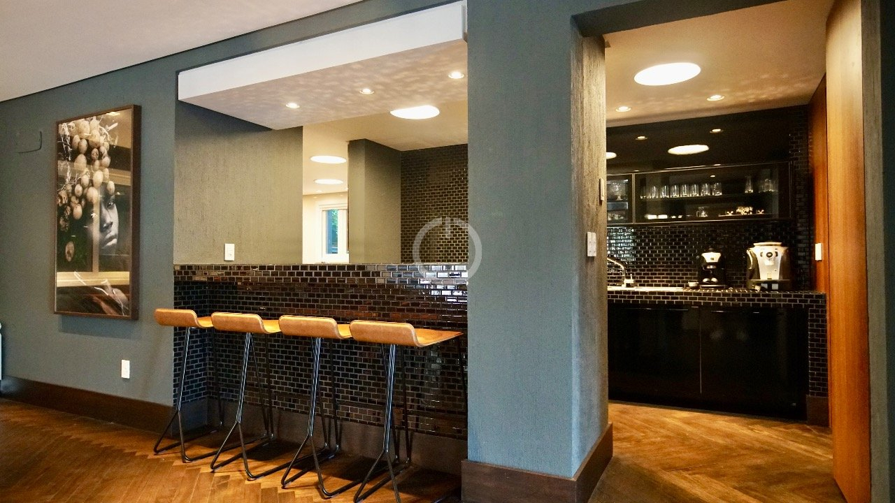 A residência conta ainda com estar íntimo, escritório, elevador, automação residencial e calefação em todos os ambientes, garantindo conforto em todas as estações. Dispõe de área de serviço completa, dormitório para duas secretárias, banheiro de serviço e depósito.