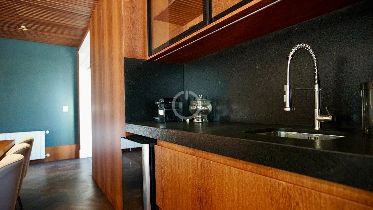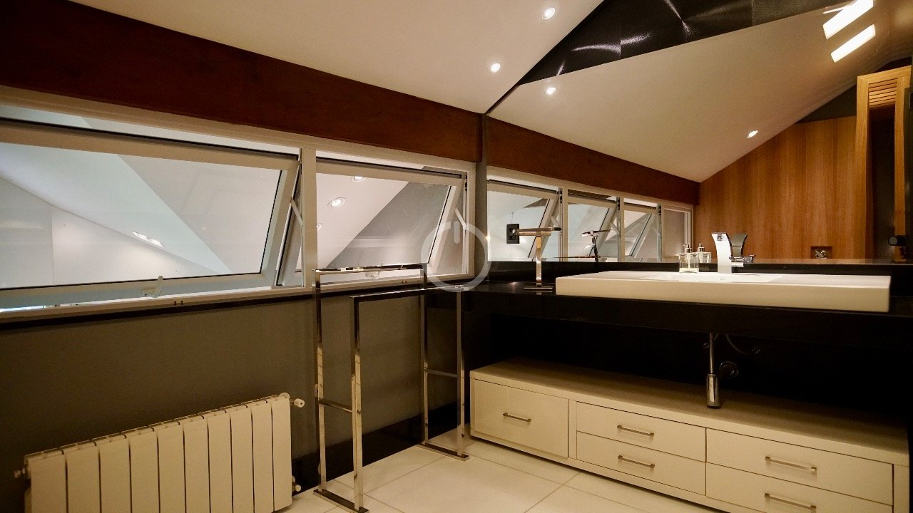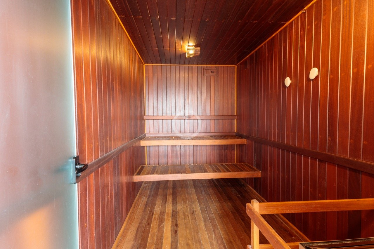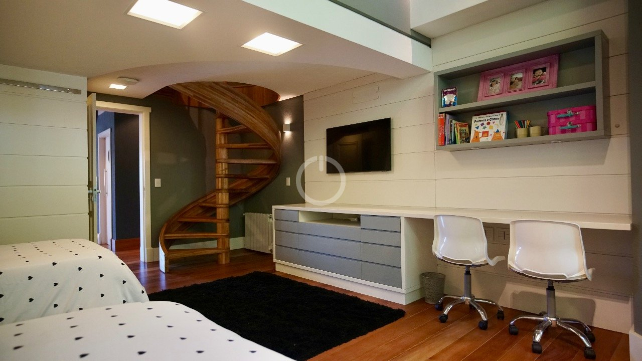 A residência conta ainda com estar íntimo, escritório, elevador, automação residencial e calefação em todos os ambientes, garantindo conforto em todas as estações. Dispõe de área de serviço completa, dormitório para duas secretárias, banheiro de serviço e depósito.
