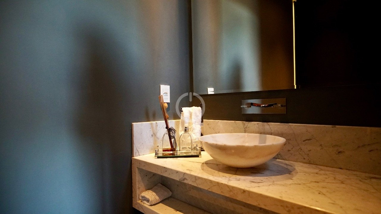 A casa principal foi projetada para oferecer conforto absoluto e sofisticação atemporal. São 4 amplas suítes, ambientes generosos e uma distribuição que equilibra imponência e acolhimento. Hall de entrada marcante, living de grandes proporções, espaço churrasco, living de jogos, espaço gourmet e adega compõem a área social, pensada para receber com elegância.