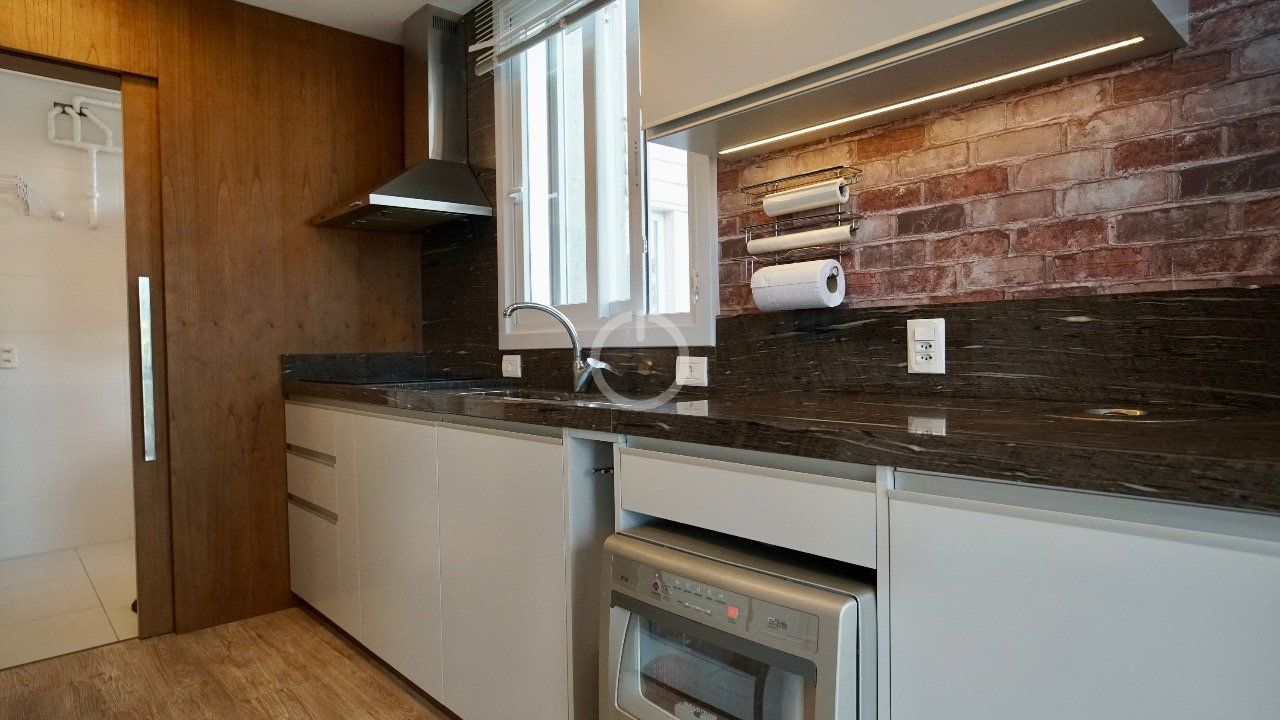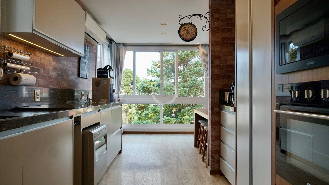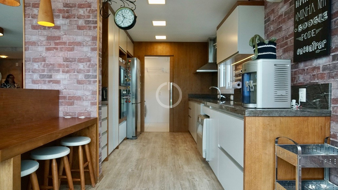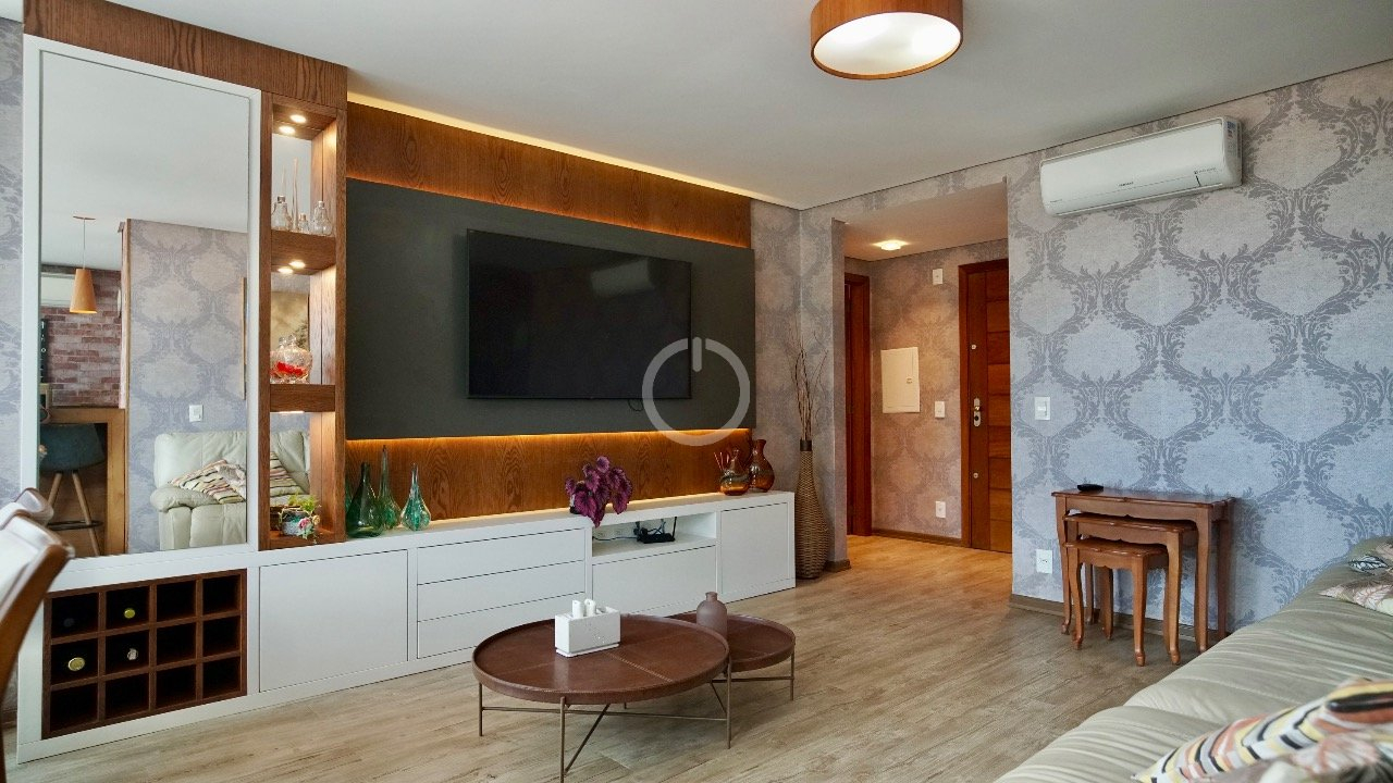 O apartamento é mobiliado e está totalmente equipado e decorado, pronto para morar. A sala de jantar em conceito aberto e o living integrado com sacada fechada oferecem uma vista agradável para o centro, criando um ambiente tranquilo e convidativo.