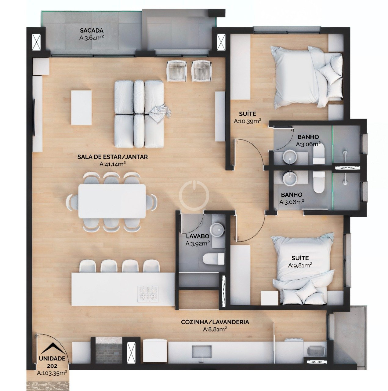 2 dorm. | 2 suítes | 1 vaga | 103.30m² | Cód. 828 | Compartilhar no WhatsApp
