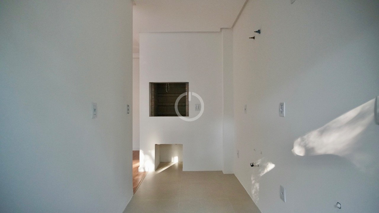 Possui living integrado com sala de estar, jantar e TV, além de cozinha com churrasqueira.